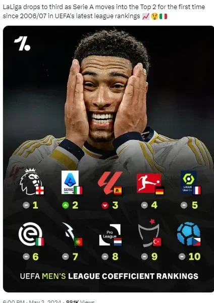 Serie A Beats La Liga, Bundesliga In Latest UEFA League Ranking